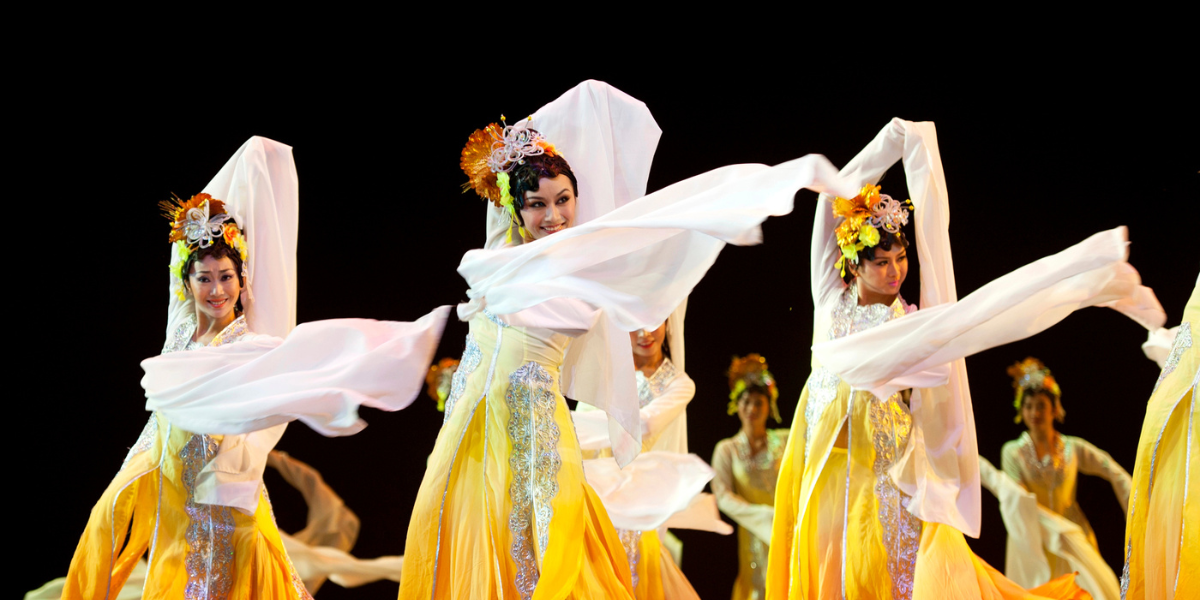 A breathtaking classical Chinese dance performance with a live orchestra blending Eastern and Western traditions.